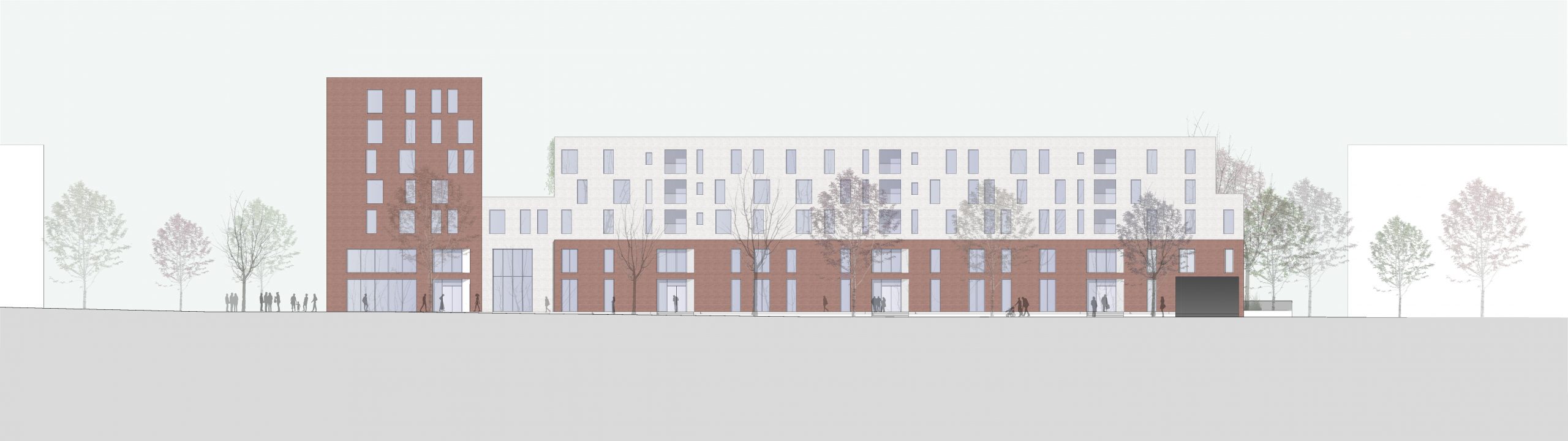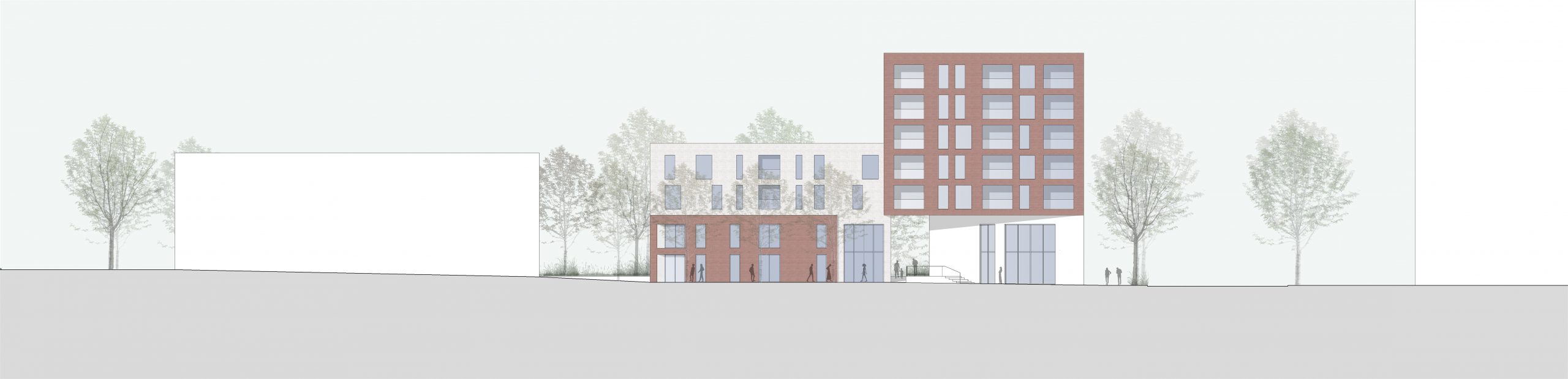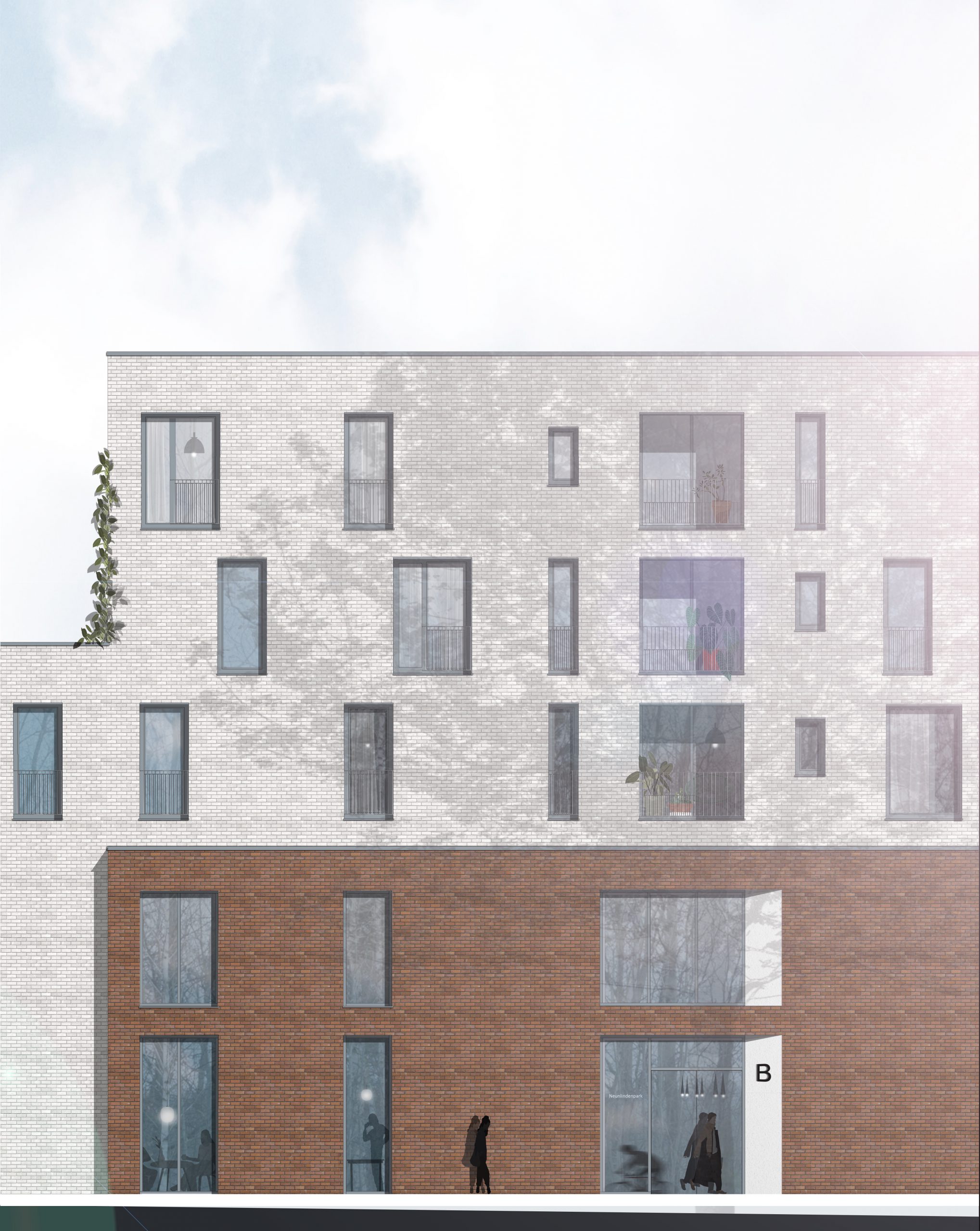 Die Konzeption des Entwurfs mit Blockrandbebauung und Wohnhof bezieht sich auf das historische Viertel Beurbarung und versteht sich als Initialzündung für eine zukünftige Gebietsentwicklung. Im Fall einer baulichen Weiterentwicklung des Areals ist eine Vergrößerung des Platzes nach Osten möglich, die Idee des grünen Wohnparks mit seinen atmosphärischen Grünflächen und halböffentlichen Freiräumen kann auf den Nachbargrundstücken weiter wachsen. Um Vereinsamung und Anonymisierung im städtischen Kontext entgegenzuwirken, setzt der Entwurf bewusst auf ein auf alle Generationen anwendbares dreistufiges Freiraumkonzept, das sowohl Vernetzung nach Außen, Teilhabe, partizipatorische Gestaltungen z.B. von Gemeinschaftsgärten, Lernen aber auch Rückzug ins Private ermöglicht.